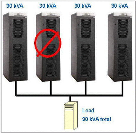 UPS供電模塊的規(guī)模小到3kVA,大到1,000kVA以上。一般來說,企業(yè)應該部署比成品模塊預計滿容量小4~6倍的UPS模塊。