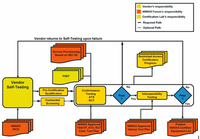 - 各設(shè)備廠商參照WiMAX的PICS文件自行(或委托)進(jìn)行設(shè)備的預(yù)認(rèn)證測(cè)試。