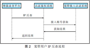 對于寬帶用戶來說,認(rèn)證鑒權(quán)系統(tǒng)需要根據(jù)用戶訪問的IP地址對用戶身份進(jìn)行反查;或?qū)τ脩粼L問業(yè)務(wù)時(shí)輸入的用戶賬號信息進(jìn)行驗(yàn)證。其中反查與驗(yàn)證工作均需借助于寬帶接入認(rèn)證系統(tǒng)(AAA)實(shí)現(xiàn)。