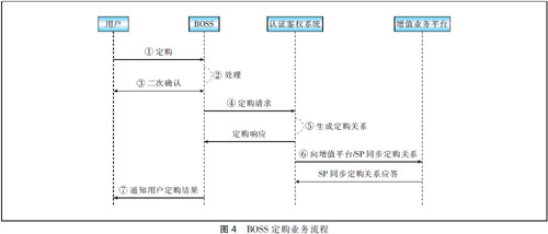 用戶定購、退定可以采用短信、WAP、Web、IVR和客服等方式,認(rèn)證鑒權(quán)控制系統(tǒng)接受各種定購、退定消息請求,定購結(jié)果由發(fā)起定購方根據(jù)需要通知用戶;定購、退定過程中認(rèn)證鑒權(quán)控制系統(tǒng)負(fù)責(zé)和增值業(yè)務(wù)系統(tǒng)及BOSS進(jìn)行必要的交互,定購、退定成功后,認(rèn)證鑒權(quán)控制系統(tǒng)負(fù)責(zé)通知SP/CP。