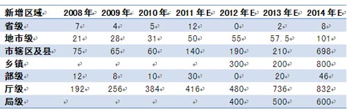 圖表 2 2008-2014年政府應(yīng)急平臺(tái)建設(shè)新增區(qū)域數(shù)量