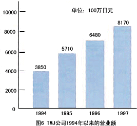 ——該公司成立于1992年,現(xiàn)在是日來第4大電話營銷專業(yè)公司。該公司是從原福武書店的電話中心獨立出來的。福武書店的”進研學(xué)習(xí)會”(類似于中國的函授大學(xué))在日本全國擁有401萬會員。對這些會員的客戶服務(wù)目前占TMJ業(yè)務(wù)的50%,盡管TMJ成立時間不長。但由于積極引進先進技術(shù)(CTI,IVR,ACD,預(yù)撥號)和先進的管理方式,發(fā)展非常迅猛。1997年營業(yè)額達到81億7千萬日元,總席位有1,500個,外線數(shù)3,00O條,登錄業(yè)務(wù)代表達4,350人,該公司擁有6個呼叫中心(東京3個,大販、名古屋、岡山各1個),每月平均呼入電話63萬個,呼出電話60萬個。該公司的主要業(yè)務(wù)有:訂購、預(yù)約受理、促銷活動、銷售支持、客戶服務(wù)中心,其中面向消費者/面向企業(yè)的比例為4∶1。圖6為TMJ公司1994年以來的營業(yè)額。