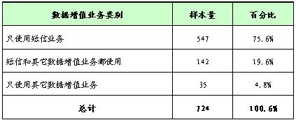 近七成手機用戶已使用過數(shù)據(jù)增值業(yè)務,且主要使用的是短信業(yè)務