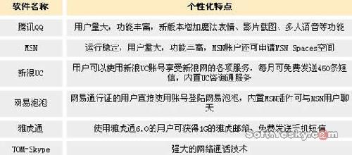 QQ、MSN、新浪UC、網易泡泡、雅虎通、TOM-Skype,這六種即時通信軟件總有一款你正在使用吧。現在上網的人沒有一個和網友即時通訊的工具,那上網的樂趣將會大大減少,即時通訊工具讓我們沖破了地域的界限,隨時隨地和各地的朋友溝通聯系,它們已經成為新時代人們生活和工作中不可缺少的伙伴!2004年即時通訊軟件處于前所未有的激烈競爭狀態(tài),尤其是QQ和MSN兩個主流軟件在功能開發(fā)上有了很多相似之處;UC被新浪收歸旗下新浪2005有著與新浪網站服務互通的優(yōu)勢增加它的競爭力度;TomCom與世界知名的Skype合作開發(fā)了在大陸使用的Tom-Skype語音通信軟件,以上等等可看出今年是即時通訊軟件最熱鬧的一年,用戶有了更多更好的選擇,這塊大蛋糕不再被騰訊QQ獨占。