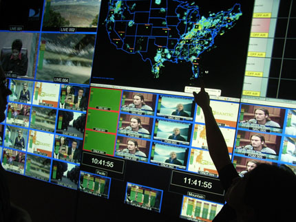 MediaFLO工作中心屏幕墻,為保證信號(hào)發(fā)送正常,天氣也是監(jiān)控目標(biāo)之一