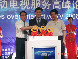 市科委主任李逸平在講話中表示,作為國(guó)家數(shù)字電視先行先試城市,上海高度重視數(shù)字電視互動(dòng)技術(shù)的發(fā)展!吧虾;(dòng)媒體聯(lián)合開放實(shí)驗(yàn)室”成立,是推進(jìn)上海互動(dòng)電視產(chǎn)業(yè)化發(fā)展、探索“三網(wǎng)融合”發(fā)展的又一舉措。國(guó)家重大專項(xiàng)“高性能寬帶信息網(wǎng)”落地上海,率先開通了包括1路高清和116路標(biāo)清的互動(dòng)電視服務(wù),推動(dòng)互動(dòng)電視在長(zhǎng)寧、浦東、閘北等地試驗(yàn)示范,讓互動(dòng)電視不再高不可攀,而是走入了尋常百姓家。