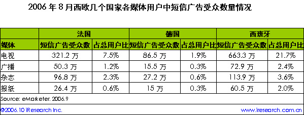 8月西班牙21.7%電視用戶(hù)是短信廣告受眾