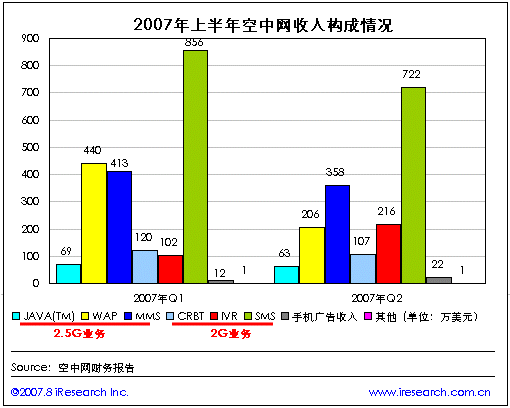 對(duì)此,艾瑞認(rèn)為,空中網(wǎng)Q2業(yè)績下滑主要原因是由于中國移動(dòng)2007年5月開始實(shí)施一系列新政策,包括當(dāng)手機(jī)用戶下載WAP產(chǎn)品時(shí)顯示GPRS服務(wù)費(fèi)用提醒,以及將空中網(wǎng)和其它第三方WAP服務(wù)提供商從中國移動(dòng)定制手機(jī)內(nèi)置菜單中刪除。