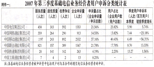 為加強(qiáng)社會(huì)監(jiān)督,推進(jìn)電信服務(wù)質(zhì)量持續(xù)改善,根據(jù)《中華人民共和國電信條例》相關(guān)規(guī)定,現(xiàn)將2007年第三季度電信服務(wù)質(zhì)量有關(guān)情況公布如下。