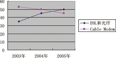 市場(chǎng)研究公司ParksAssociates最新發(fā)布的研究報(bào)告稱,2007年美國(guó)住宅用戶的寬帶網(wǎng)普及率將超過(guò)50%,美國(guó)住宅寬帶網(wǎng)用戶將超過(guò)6000萬(wàn),這些用戶都可以通過(guò)寬帶接入享受三種業(yè)務(wù)捆綁服務(wù)。由于電信公司的寬帶接入技術(shù)占優(yōu)勢(shì),因而在三種業(yè)務(wù)捆綁服務(wù)方面,電信公司占有競(jìng)爭(zhēng)優(yōu)勢(shì)。所以,凡是在兩家有競(jìng)爭(zhēng)的地方,有線電視公司都無(wú)例外地降低了價(jià)格,并失去了相當(dāng)一部分傳統(tǒng)市場(chǎng)。