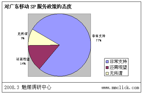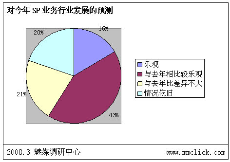 魅媒無線調(diào)研中心認(rèn)為:由于前期政府以及運(yùn)營(yíng)商對(duì)SP行業(yè)的相關(guān)整頓效果明顯,相關(guān)的制度、措施以及管理系統(tǒng)上線后,SP違規(guī)的風(fēng)險(xiǎn)已經(jīng)越來越大,行業(yè)自律狀態(tài)較之前有明顯的改善。但是由于部分的制度明顯存在矯枉過正現(xiàn)象,不少的措施嚴(yán)重影響到用戶的體驗(yàn),而且對(duì)SP管理一直出于消極的狀態(tài),需要不斷調(diào)整。