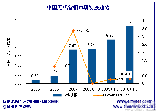 易觀:2008年中國(guó)無線營(yíng)銷市場(chǎng)規(guī)模將達(dá)7.74億元