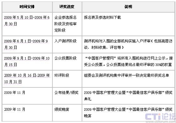 本次評選活動將邀請國內權威客戶管理研究機構“迪銘客戶管理研究院”為唯一測評機構。評選自2009年5月開始,經過一系列的評選流程,評選最終結果將于2009年11月在北京舉辦的“2009中國客戶管理大會暨中國最佳客戶俱樂部頒獎典禮”中隆重揭曉。