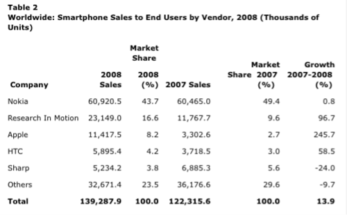 2008年智能手機(jī)市場(chǎng)份額