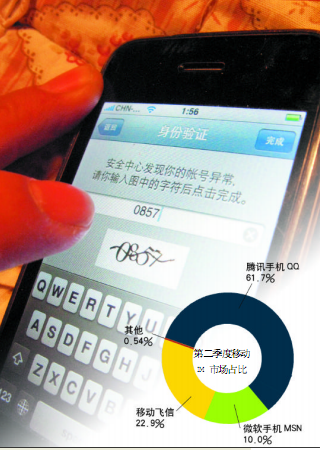 從查找問題的角度看,這也未必是壞事。談到移動飛信詐騙短信事件,中移動數(shù)據(jù)中心某人士對記者感慨,飛信能被犯罪分子盯上,說明經(jīng)過三年多的發(fā)展,飛信今天的用戶規(guī)模,已經(jīng)有行業(yè)話語權(quán)了。據(jù)數(shù)據(jù)統(tǒng)計,到今年第二季度,中國移動手機(jī)客戶端飛信用戶數(shù)達(dá)到1.84億,環(huán)比增長16.1%,活躍賬戶數(shù)達(dá)到2045萬,活躍用戶市場占有率為22.9%。這一數(shù)據(jù)足可以說明,電信運(yùn)營商利用移動IM業(yè)務(wù)打造個人移動門戶戰(zhàn)略初步有了勝算。