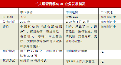 從國外移動運(yùn)營商發(fā)展MIM的經(jīng)歷來看,因為運(yùn)營商畢竟無法獨(dú)占市場,需要其他IM服務(wù)商提升技術(shù)研發(fā)能力,從而更好地提供用戶體驗;需要延續(xù)優(yōu)勢IM服務(wù)商原來積累的用戶量和業(yè)務(wù)號召力。這一點(diǎn),中國電信已經(jīng)看到并實(shí)踐,其打造的IM門戶便是攜手微軟MSN!巴ㄟ^與優(yōu)勢IM合作,一方面可以借助合作伙伴在IM技術(shù)方面的優(yōu)勢,也可以最大限度地利用合作伙伴的用戶群基礎(chǔ)!毕嚓P(guān)人士指出。