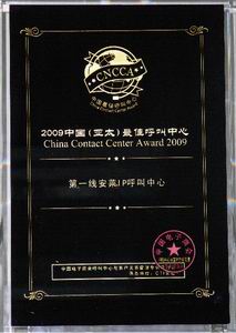 第一線(xiàn)安萊榮獲“2009中國(guó)(亞太)最佳外包呼叫中心”獎(jiǎng)
