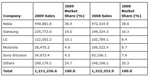 根據(jù)Gartner的數(shù)據(jù)顯示,去年共銷售出的智能手機(jī)達(dá)1.72億部,比前年上漲了24%,然而全世界手機(jī)的銷售總量卻并無起色(2008年為12.2億部,而2009年為12.1億部。在去年銷售的所有手機(jī)中,智能手機(jī)占14%,較2008(11%)年有所提升。iPhone盡管去年漲勢迅猛,只占去年各種手機(jī)銷售總量的2%。