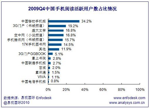 2009年Q4中國(guó)手機(jī)閱讀市場(chǎng)用戶(hù)活躍度進(jìn)一步提升
