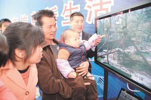 圖:孩子通過(guò)電信全球眼,看到了動(dòng)物園里的熊貓寶寶。