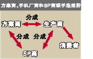 中國(guó)移動(dòng)2007年1月出臺(tái)的《移動(dòng)夢(mèng)網(wǎng)SP合作管理辦法》規(guī)定,禁止SP和終端廠家直接進(jìn)行終端內(nèi)置業(yè)務(wù)的合作。但是,大部分國(guó)產(chǎn)手機(jī)生產(chǎn)環(huán)節(jié)當(dāng)中,都有一個(gè)重要的角色,那就是手機(jī)方案商。方案商主要負(fù)責(zé)提供整套手機(jī)設(shè)計(jì)方案,包括研發(fā)手機(jī)主板、設(shè)計(jì)操作系統(tǒng),他們把帶有操作系統(tǒng)的主板賣(mài)給手機(jī)生產(chǎn)商,生產(chǎn)商再采購(gòu)?fù)鈿、液晶屏等部件組裝成成品手機(jī)。
