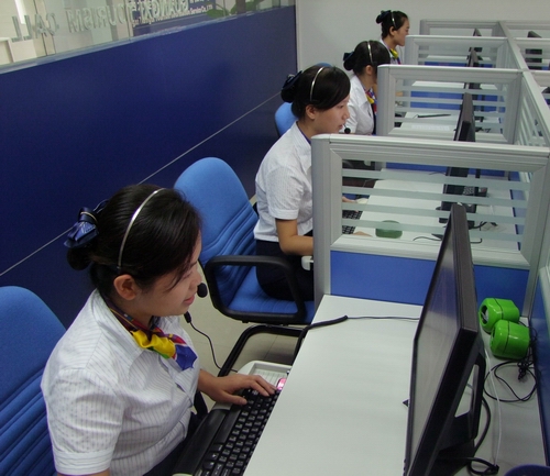 圖:呼叫中心工作人員在接聽游客的咨詢電話