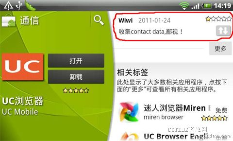 目前,很多手機社交應(yīng)用中加入了對用戶關(guān)系的抓取,這些應(yīng)用在用戶需要尋求社交關(guān)系時,將讀取用戶通訊錄中的信息,并進行自動匹配。其中包括手機廠商HTC的HTCSENSE,UCWEB中的UC樂園,以及最近火熱的kik類應(yīng)用,如KikMessenger,米聊、微信等。多數(shù)用戶表示對于此種抓取通訊錄的行為表示疑慮。