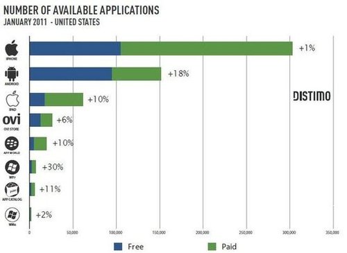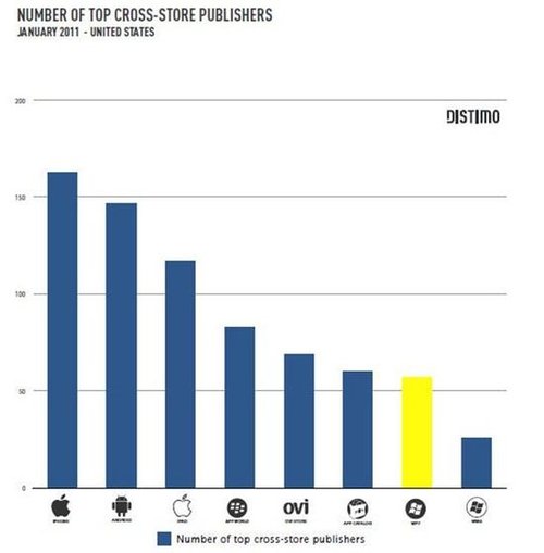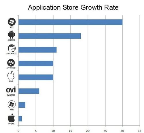 專注于App Store發(fā)展得研究者Distimo昨天公布了一份有關(guān)手機(jī)應(yīng)用程序商店的市場(chǎng)報(bào)告,報(bào)告顯示W(wǎng)indows Phone 7的增長(zhǎng)速度高達(dá)30%。