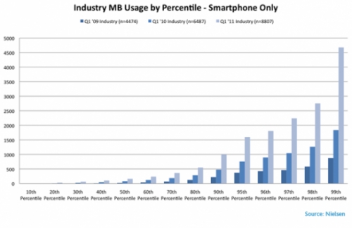 尼爾森:移動數(shù)據(jù)使用量幾乎翻番