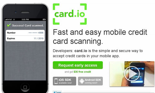 在今年一月,Card.io獲得了由前eBay副總裁邁克爾·迪林(Michael Dearing)牽頭的100萬美元投資,其他投資者還包括SoftTech VC的杰夫·卡拉維爾(Jeff Clavier)和查爾斯·哈德森(Charles Hudson),K9風(fēng)投的馬努·庫(kù)馬爾(Manu Kumar),PayPal風(fēng)險(xiǎn)投資部的前副總裁阿洛克·哈洛特(Alok Bhanot)及AdMob的創(chuàng)始人兼首席執(zhí)行官奧馬爾·哈穆伊(Omar Hamoui)。