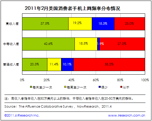 2011年:美國(guó)中高端收入人群手機(jī)上網(wǎng)頻率較高