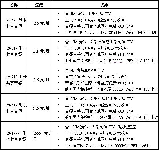 注:中國(guó)電信固定電話用戶(hù)(未安裝中國(guó)電信寬帶):在時(shí)尚包和全能包收費(fèi)基礎(chǔ)上另增加10元/月使用費(fèi)。