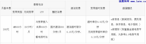 表二:尊享e8套餐208元