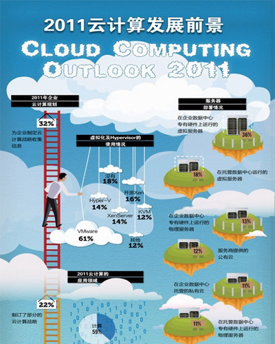 《2011云計算發(fā)展前景調(diào)查報告》的目標(biāo)在于收集企業(yè)用戶中使用虛擬化和云計算技術(shù)的信息,有助于公眾了解云計算技術(shù)及其服務(wù)的演進(jìn)。這份調(diào)查報告的結(jié)果來自2011年第二季度對BitNami、Cloud.com和Zenoss開源與系統(tǒng)管理社區(qū)中500多位用戶的調(diào)查。其目的是想看清楚云計算技術(shù)的使用趨勢,并對部署虛擬基礎(chǔ)設(shè)施提供參考。