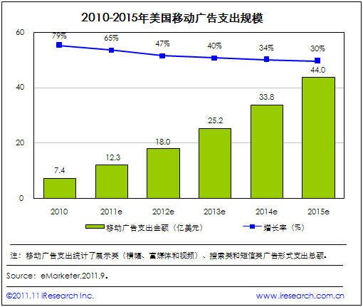 艾瑞:2011年美國移動廣告支出規(guī)模將達(dá)12.3億美元