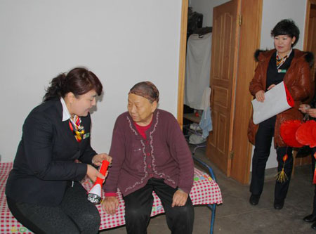 “阿姨,春節(jié)快到了,我們來看看您,前兩天已經(jīng)幫您把電充上了,這次給您帶了個(gè)手電,用著它以后到地下室可以照個(gè)亮!标(duì)長阿依古麗向丁阿姨說明來意,還跟丁阿姨試了試,手電是充電式的,不用換電池,丁阿姨挺高興的。臨走時(shí),阿依古麗還在她家門上貼了個(gè)大紅的“福”字,祝福老人家新年快樂。