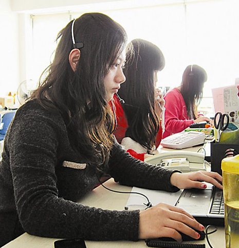 趙曉薇(化名)是拉手網(wǎng)北京客服部的一名工作人員,每天早上8:30,她會(huì)準(zhǔn)時(shí)戴上耳麥,開(kāi)始一天忙碌的工作!疤孛,電話多的時(shí)候,一天得有300個(gè)來(lái)電!睍赞笔且粋(gè)語(yǔ)氣平和,聲音甜美,笑容溫和的女孩子。正說(shuō)著,她就趕緊接通了正在鈴鈴作響的電話,開(kāi)始熱情、耐心地為用戶釋疑解困。