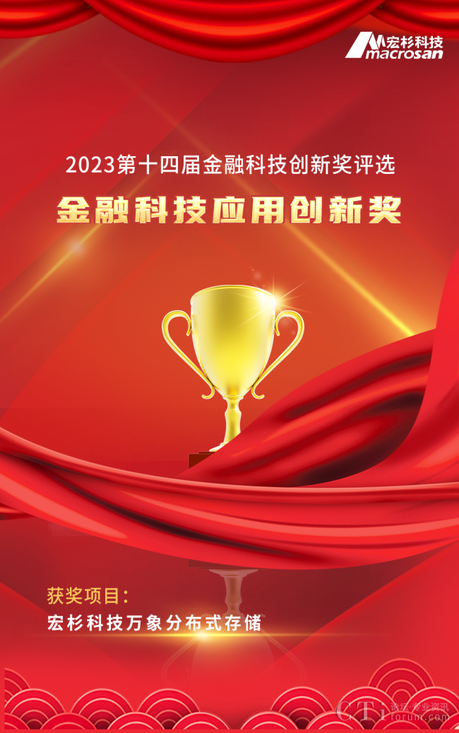本次評選旨在表彰2023年度在金融科技創(chuàng)新和業(yè)務發(fā)展方面取得突出成果的單位。此次獲獎充分體現(xiàn)了專家評審們對宏杉科技在金融科技領域創(chuàng)新實力及實踐成果的認可。