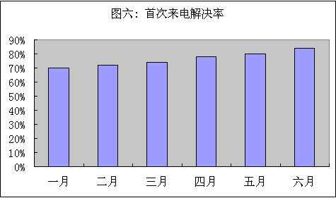 圖六反映了本例首次來電和解決率及平均解決時間。我們可以看到總體趨勢管理良性發(fā)展。