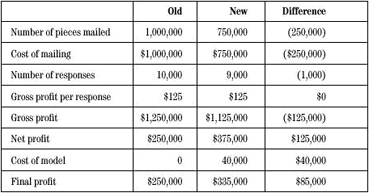 請注意,郵寄的純利潤增加了$125,000,甚至你扣除由于數(shù)據(jù)采集而產(chǎn)生的軟件、硬件即人力資源方面的$40,000,純利潤還增加了$85,000。建模的投入轉(zhuǎn)化成了200%的收益,這遠(yuǎn)遠(yuǎn)超過了BB&CC對這一項目的ROI要求。