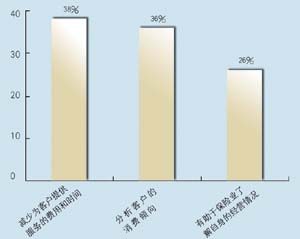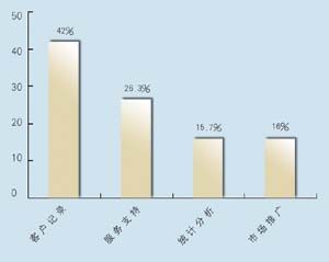 關(guān)于所應(yīng)用的CRM類型,有5家是呼叫中心,5家是分析型,7家是運(yùn)營型,2家是屬于大型企業(yè)CRM。其中13家擁有動(dòng)態(tài)客戶數(shù)據(jù)庫,占到68.4%。這其中又有42%利用數(shù)據(jù)庫作客戶記錄,26.3%作為客戶支持使用,15.7%用作統(tǒng)計(jì)分析,另有16%作為市場推廣。保險(xiǎn)公司與客戶聯(lián)系的方式,從重要性來看依次為:面對(duì)面\電話\網(wǎng)絡(luò)\傳真,這說明保險(xiǎn)公司對(duì)于與客戶進(jìn)行人性化交流的重視。在問到CRM的主要作用時(shí),有5家表示使用CRM有助于保險(xiǎn)業(yè)了解自身的經(jīng)營情況,幫助公司準(zhǔn)確地發(fā)現(xiàn)贏利客戶和具有贏利潛力的客戶,有7家認(rèn)為使用CRM有助于分析客戶的消費(fèi)傾向,有7家認(rèn)為使用CRM有助于優(yōu)化信息和資源管理。在問到是否愿意為像CRM系統(tǒng)這樣的咨詢或服務(wù)付費(fèi)時(shí),有11家表示愿意,占到57.8%。