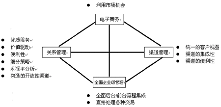 本文中,將針對(duì)國外金融企業(yè)對(duì)CRM的看法,提出一種全面的對(duì)CRM的看法,我們將從四個(gè)角度來描述,它們分別是電子商務(wù)(E-business)、渠道管理(Channel management)、關(guān)系管理(Relationships)、全面企業(yè)級(jí)管理(Management of the total enterprise),取第一個(gè)字母組合為ECRM。