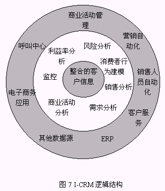 2) I-CRM的數(shù)據(jù)存儲(chǔ)中心可以導(dǎo)出供客戶接觸使用的數(shù)據(jù),可以直接被商業(yè)活動(dòng)管理利用。OLAP分析可以直接在數(shù)據(jù)存儲(chǔ)中心的基礎(chǔ)上使用。知識(shí)發(fā)現(xiàn)需要的數(shù)據(jù)一般從數(shù)據(jù)存儲(chǔ)中心按需要抽。