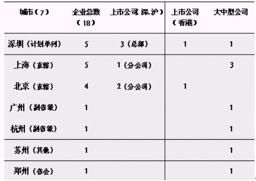圖1:截止2003年10月底統(tǒng)計(jì)的7座城市18家導(dǎo)入CRM企業(yè)的分布情況。