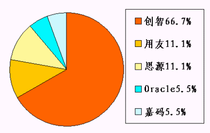 圖4:截至2003年10月底,管理軟件廠商在房地產(chǎn)CRM市場(chǎng)的份額統(tǒng)計(jì)。
