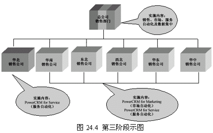 第三階段:實現(xiàn)某一區(qū)域銷售機構的服務自動化,并實現(xiàn)市場自動化、服務自動化在其他區(qū)域的推廣應用