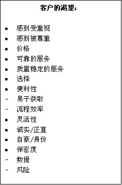 First Direct的一位高級執(zhí)行官在銀行成立伊始曾說過:“客戶體驗(yàn)中的情感成分對于First Direct來說必不可少。其它的東西,身體體驗(yàn),客戶無論從哪個(gè)銀行都一樣可能得到。而情感因素將促成First Direct未來十年內(nèi)的成功。對于一位客戶而言,在他放下電話或者停止點(diǎn)擊互聯(lián)網(wǎng)之后他不僅知道自己的需求已經(jīng)在處理之中,而且也知道自己已不必去另外的地方,客戶喜歡這種感覺!(3)