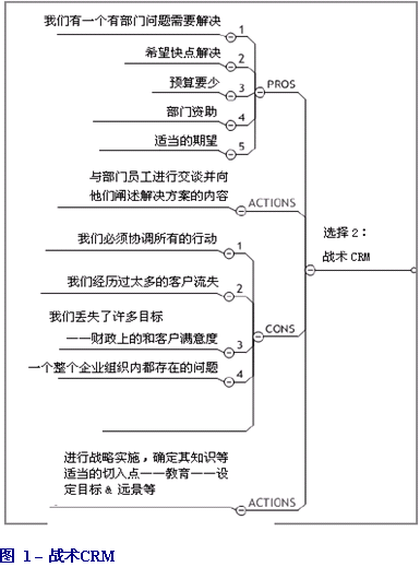 換言之,它是一種戰(zhàn)術性的還是戰(zhàn)略性的需求?許多企業(yè)喜歡在一段時間內解決某個問題或困難。然而這種戰(zhàn)術性的方式很難為企業(yè)帶來競爭上的優(yōu)勢,盡管它有可能會改善部門的效率。究竟我們要在CRM之路上走多遠?想要知道答案的話可以看一下圖1。從頭開始,問問自己:它是一個具有明確定義和目標范圍的部門需求嗎?如果真是這樣,那么預算也應該相當有限,因為其它業(yè)務部門決不會遷就。然而你很可能會發(fā)現(xiàn)你的部門問題就是企業(yè)與客戶及市場脫離的征兆。如果情況的確如此,那么你就要好好地努力深化CRM并取得更為廣泛的支持——尤其是CEO,因為你有許多關于客戶選擇的問題要有賴于他。