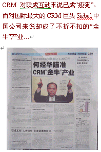 而此前Siebel在中國(guó)市場(chǎng)一直采取"大鯨不游淺水"策略,保持低調(diào),冷眼旁觀,并未投入大量人力財(cái)力在中國(guó)市場(chǎng),此次巨資籠絡(luò)何經(jīng)華,是否Siebel認(rèn)為中國(guó)CRM這個(gè)"淺池子"開始加深了?