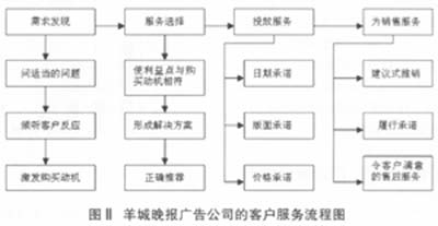 為了將客戶滿意度和忠誠(chéng)度維持在一個(gè)較高的水平,致力于與客戶建立質(zhì)量伙伴關(guān)系的羊城晚報(bào)廣告公司向客戶提供全面、貼身的售前、售中和售后服務(wù)(見圖Ⅱ),包括: